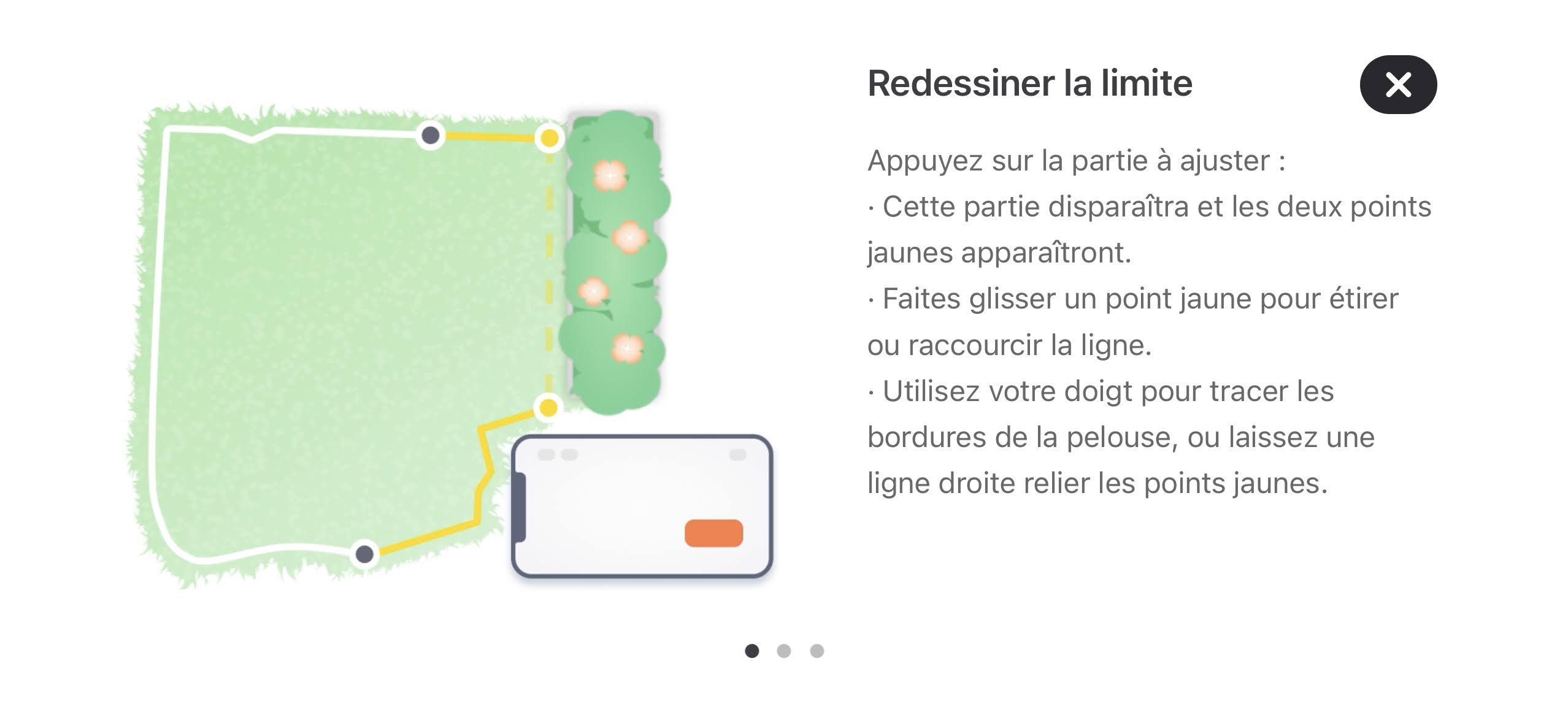 Oui, vous avez bien lu, en moins de 10 minutes, c’était opérationnel. Tout est guidé, préparé en mode “check-list” (choix du type de jardin, conseils afin de dégager les objets qui traînent, laisser les chiens et chats à l’intérieur, ne pas avoir une pelouse qui ressemble à la foret amazonienne, etc.). L’objectif est d’avoir une superficie la moins encombrée possible d’objets qui n’ont rien à y faire habituellement.
