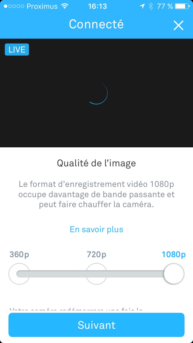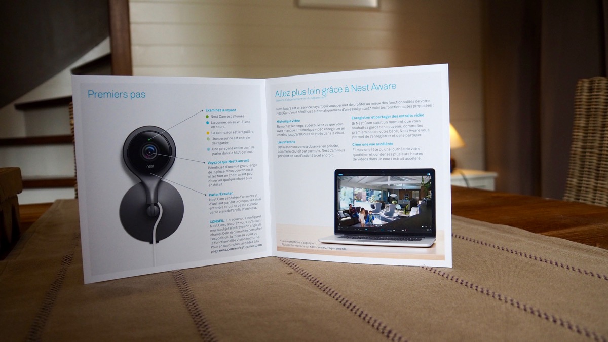 Pas de documentation. Rien. Nous allons donc installer l’App Nest sur l’iPhone et voir ce que ça donne. Je m’inscris rapidement au service Nest et je demande d’ajouter une caméra. On scanne rapidement le QR code à l’arrière, on branche la bête pour ensuite choisir le réseau WiFi. On attend cinq minutes et l’image apparait sur l’écran du téléphone. Parfait. Cette installation peut donc être réalisée par n’importe quel papa de tout âge, de toute condition, dans n’importe quelle position. Promis.