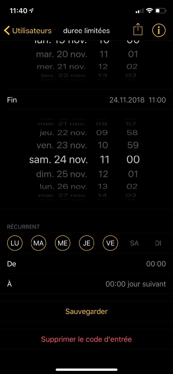 • Code d'accès temporaire