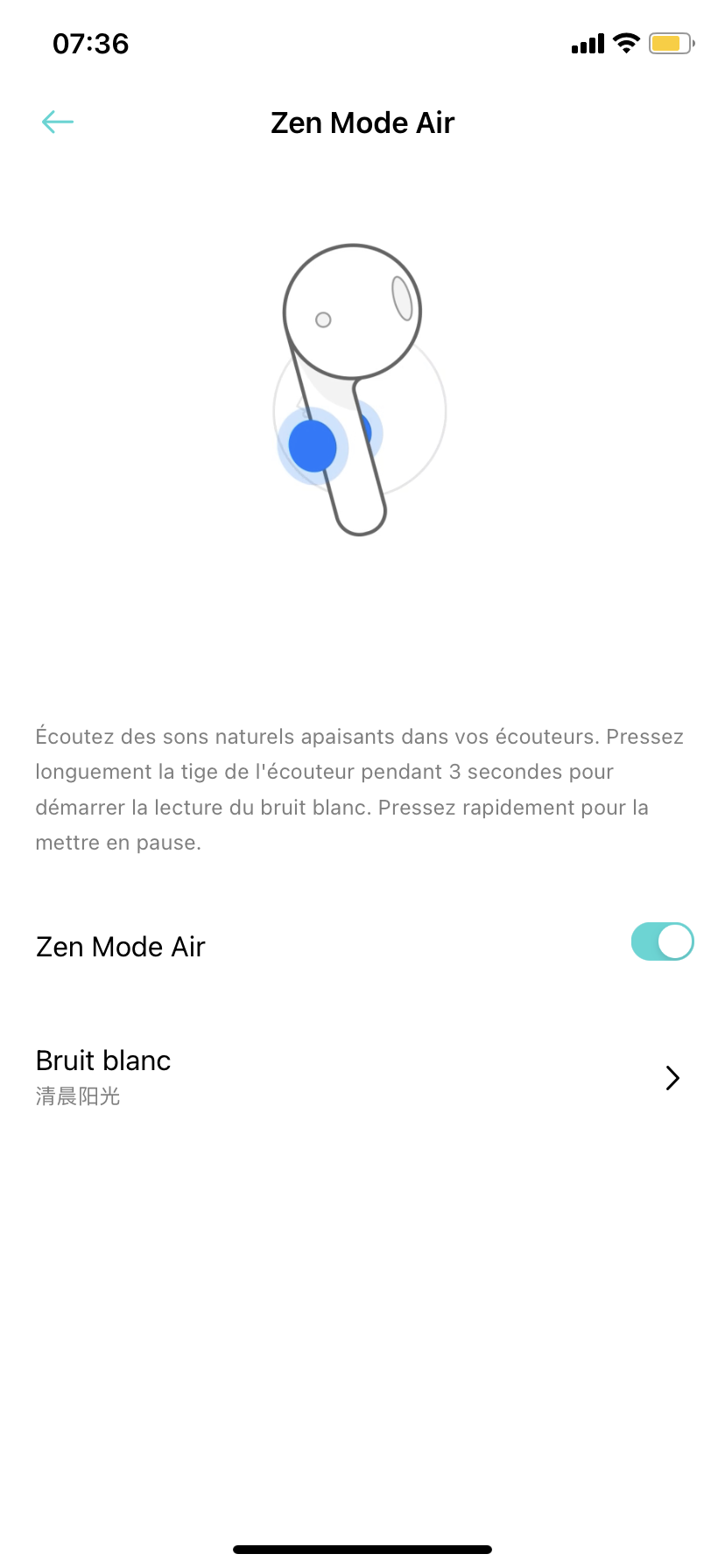 Dans l’application, il est possible d’activer un autre mode, appelé « transparence », qui permet d’atténuer le bruit ambiant sans pour autant nous isoler complètement du monde et rester attentif au monde extérieur.