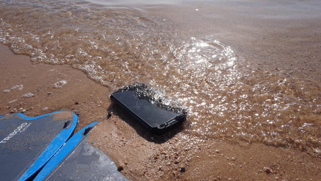 Poussant le test à l’extrême et n’ayant pas de quoi faire un château de sable, je me suis dit que j’allais l’utiliser comme pelle pour faire un trou et ensuite l’immerger quelques secondes dans la mer rouge au milieu des coraux histoire de le rincer et lui donner un petit coup de propre. Tant que j’y étais j’ai même essayé de faire des photos avec sous l’eau ce qui s’est avéré impossible. Par contre, une fois sorti de l’eau et après les diverses tortures subies, la fluidité de l’écran sous mes doigts humides est toujours aussi correcte. Le seul bémol à retenir de ces tests extrêmes est que lors de l’immersion complète, le son sortant a eu tendance à se robotiser, ce qui me conforte dans l’idée qu’un smartphone résistant à l’eau se limite à la pluie, douche ou un passage rapide au fond de la cuvette des wc mais certainement pas à une immersion complète.
