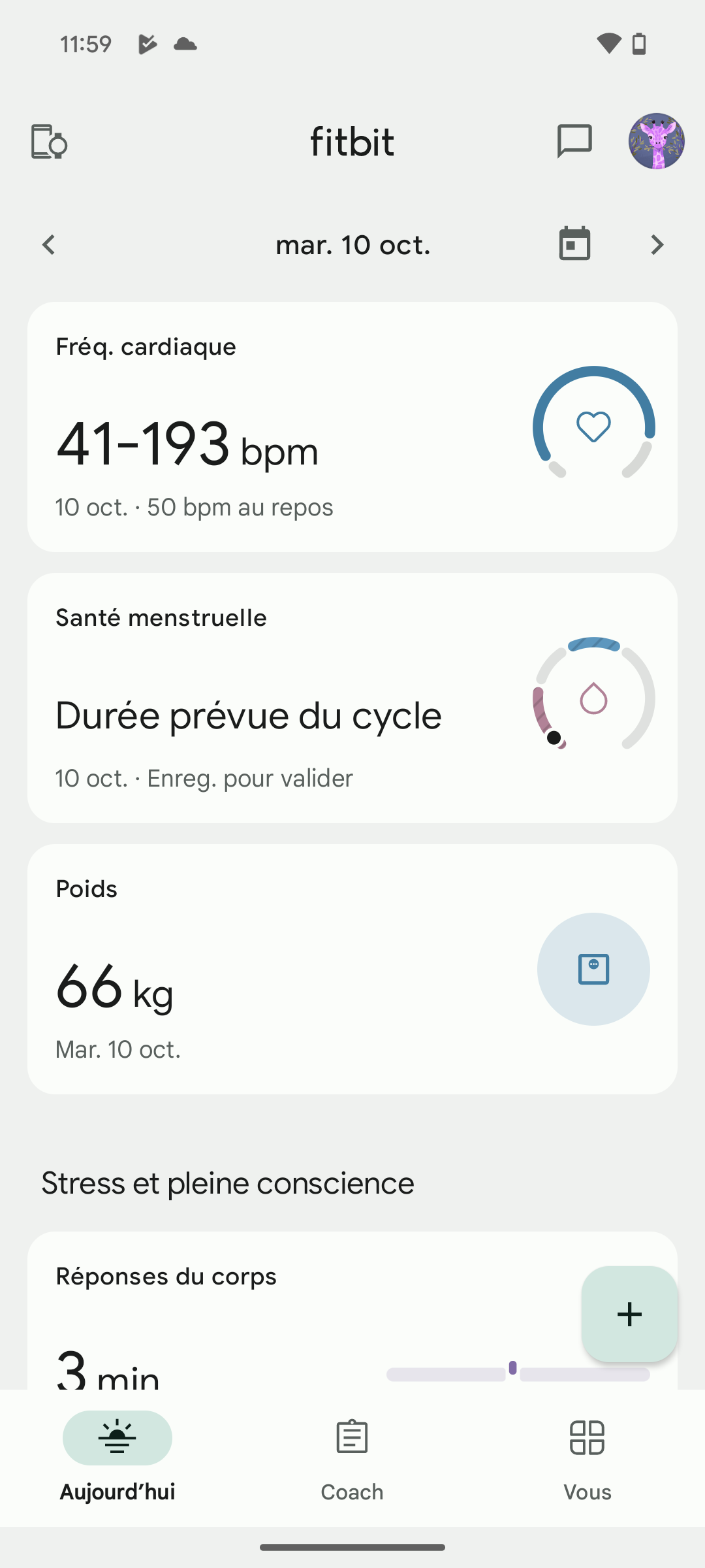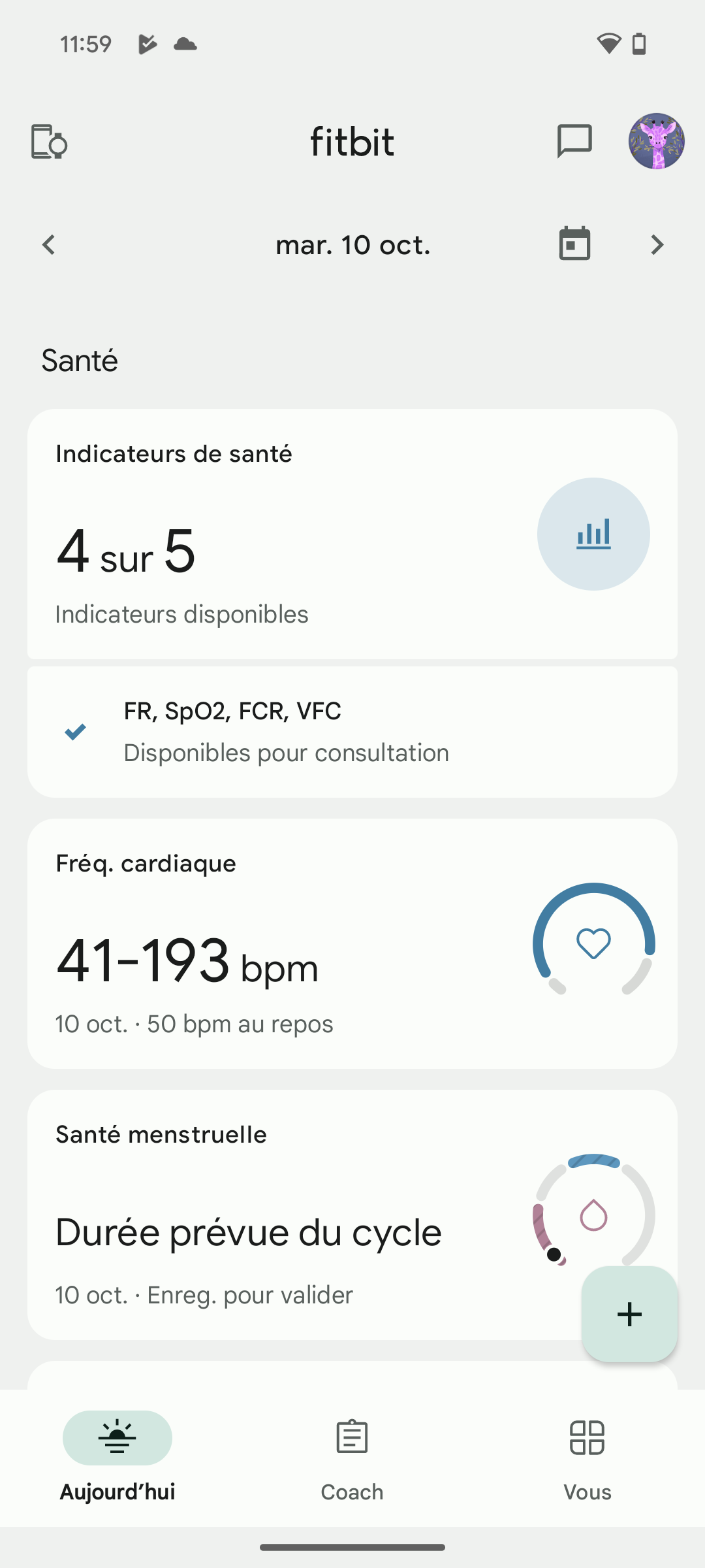 - la santé, avec des analyses plus détaillées des indicateurs de santé, fréquence cardiaque, santé menstruelle, et poids;