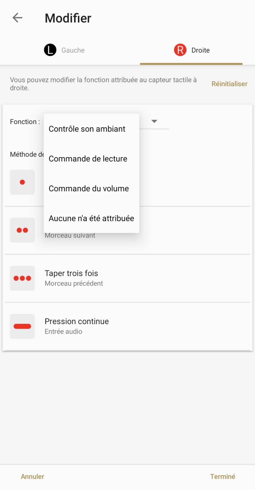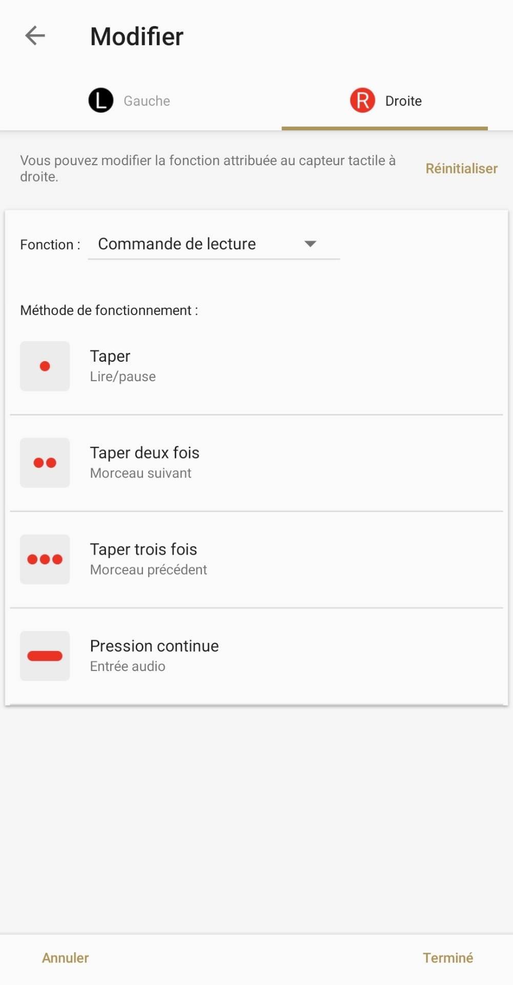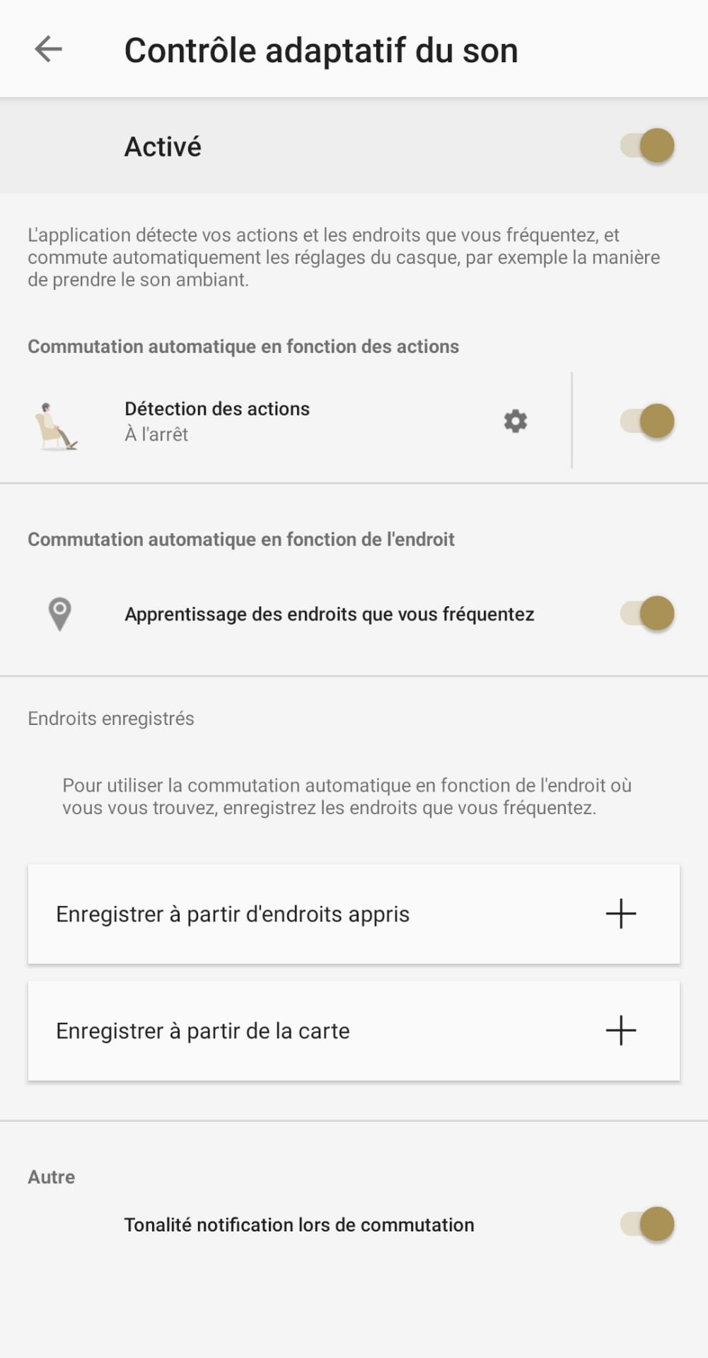L’application est complète, elle contient une foultitude d’informations et de fonctionnalités. Elle permet, en outre, de configurer les commandes tactiles de chaque écouteur selon différent critère (taper 1x, 2x, 3x, pression continue, …), visualiser le niveau de charge du boîtier et des écouteurs, configurer le contrôle adaptatif de la réduction de bruit (ajustement automatique selon la localisation ou en fonction de l’action), vérifier la bonne adaptation des embouts à ses oreilles, associer un assistant vocal (Google Assistant ou Alexa), … Option assez rare que pour être mise en avant, il est possible de configurer un égaliseur pour régler avec précision le son selon vos préférences (ça me rappelle toute ma jeunesse !).