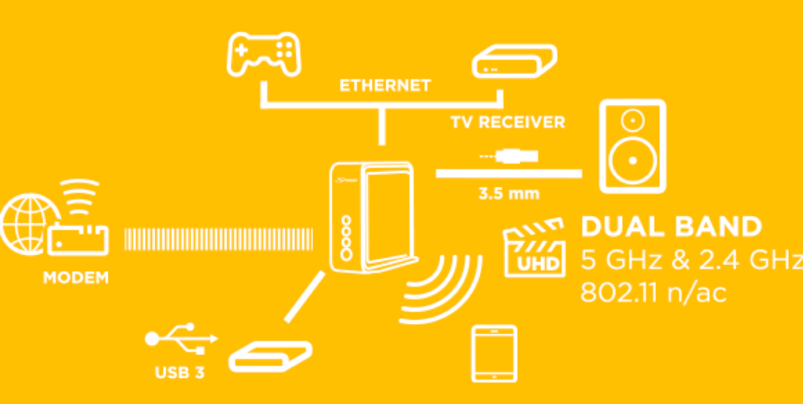 Strong est un vrai poids lourd. Le Wifi surfe sur tous les standards 2.4 ou 5 Ghz et propose donc une compatibilité complète sur les « b, g, a, n, ac, d, e, i ». La face arrière de Strong offre une connectique simple composée d’un port USB 3.0 indispensable pour la fonctionnalité NAS, une alimentation et deux ports Ethernet Gigabit. Point de vue fonctionnalités, Strong est 100% compatible Airplay, son interface permet la mise sur pieds d’un server DLNA en quelques clics et son programme interne permet la création de réseaux Wifi Multiples montés de manière « symétrique » entre le 5 et 2.4Ghz