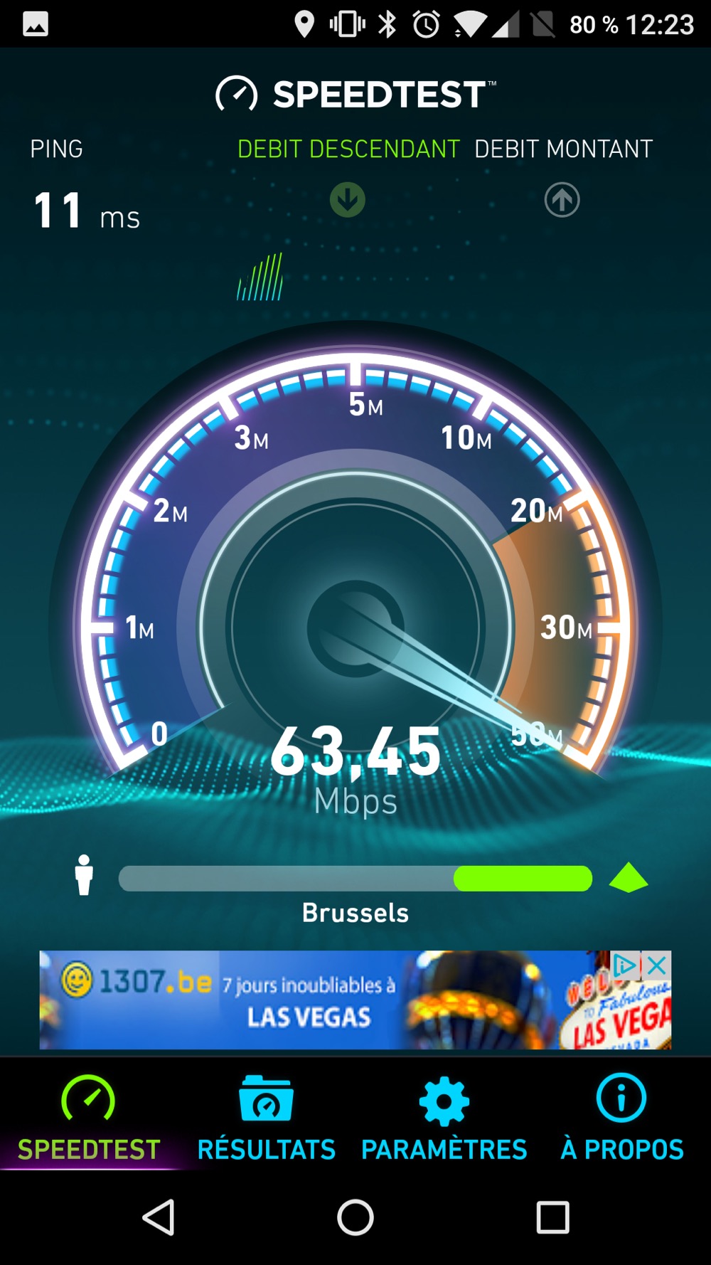 Sans repasser par la config de base, nous allons passer Strong en mode repeater. Petit hic, ce mode exige de disposer d’un signal d’au moins 3 barres (signal correct selon l’application). On déplace, enfin Tsunami déplace, Strong de quelques mètres et, là, tambours et trompettes, on arrose instantanément la pièce avec un Wifi pleine puissance. Il ne reste plus qu’à tester les taux de transfert. Comparativement (à position identique dans la pièce), on passe d’un faible 20 Mbits/sec sur le wifi de la b-box à un très agréable 60 Mbits/sec après l’installation de Strong en repeater. Match remporté haut la main.
