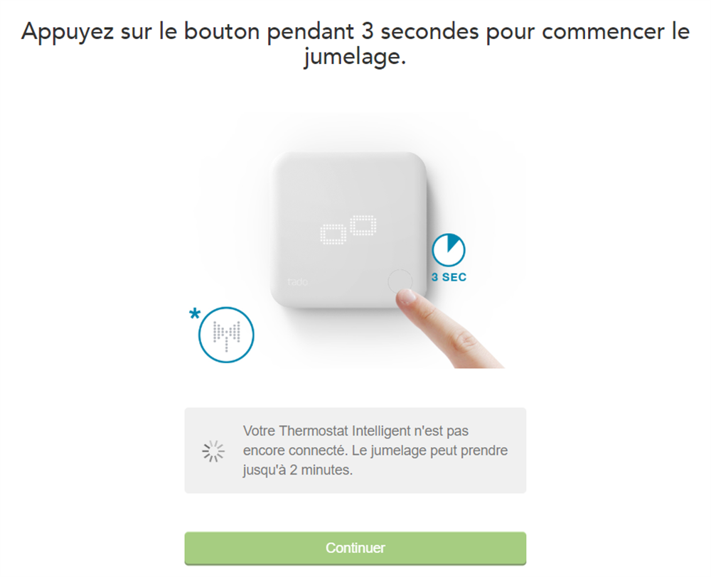 tado° vous fournit même des autocollants pour identifier les fils électriques raccordant l’ancien thermostat. Si ça ce n’est pas du service ! Une fois le thermostat installé, il faudra initier le jumelage du thermostat avec le bridge internet, appareil central des communications de toute l’installation.