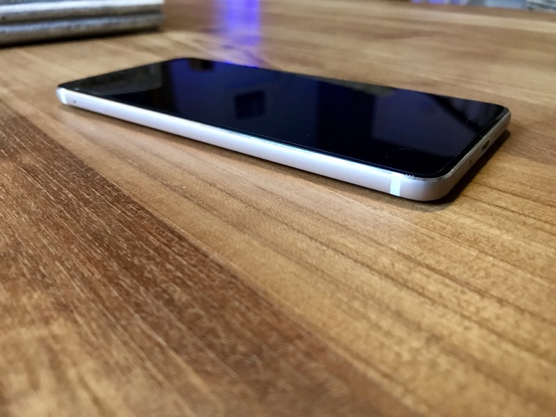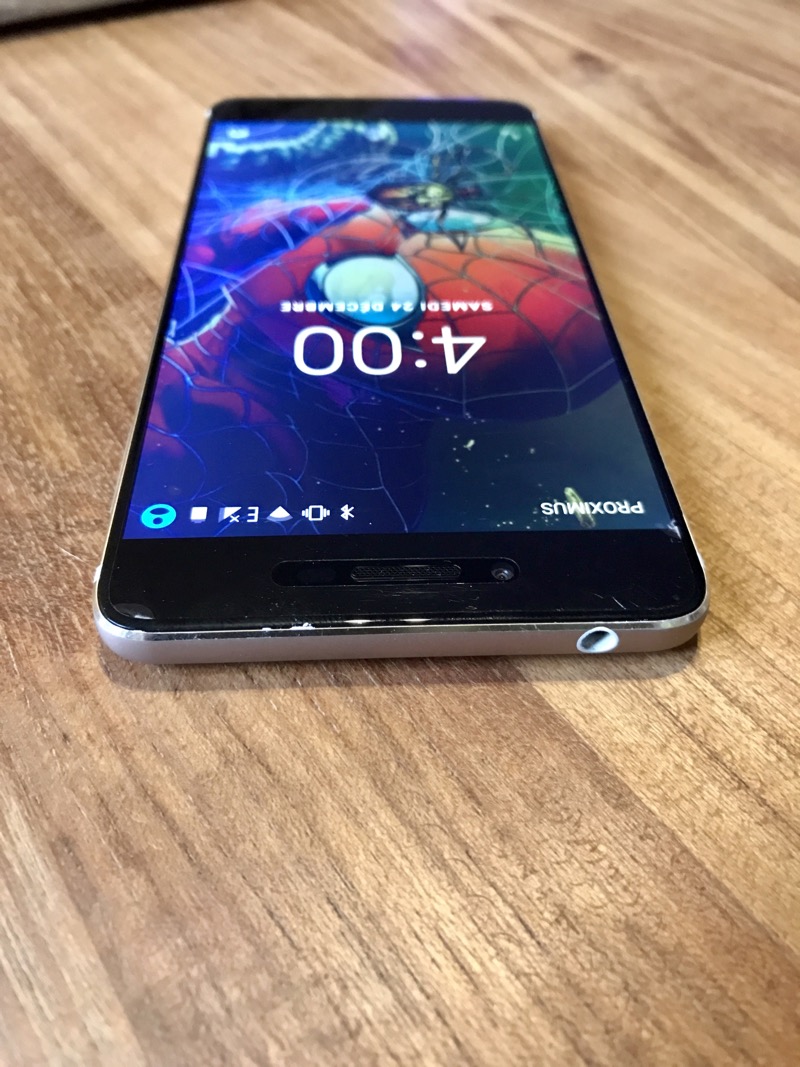 Vernee a mis le pâté sur ce téléphone et ça ce voit ! Composé essentiellement d’aluminium et de bords arrondis autour de l’écran, celui-ci est protégé par une vitre de protection qui facilite la vie pour les personnes qui font tomber leur téléphone souvent comme moi. L’écran prend presque la totalité du smartphone sur les côtés (1mm sépare l’écran des bords). Plus haut, nous avons l’écouteur qui est protégé d’une grille (heureusement) ainsi qu’un appareil photo frontal de 5 MPixels pour les selfies