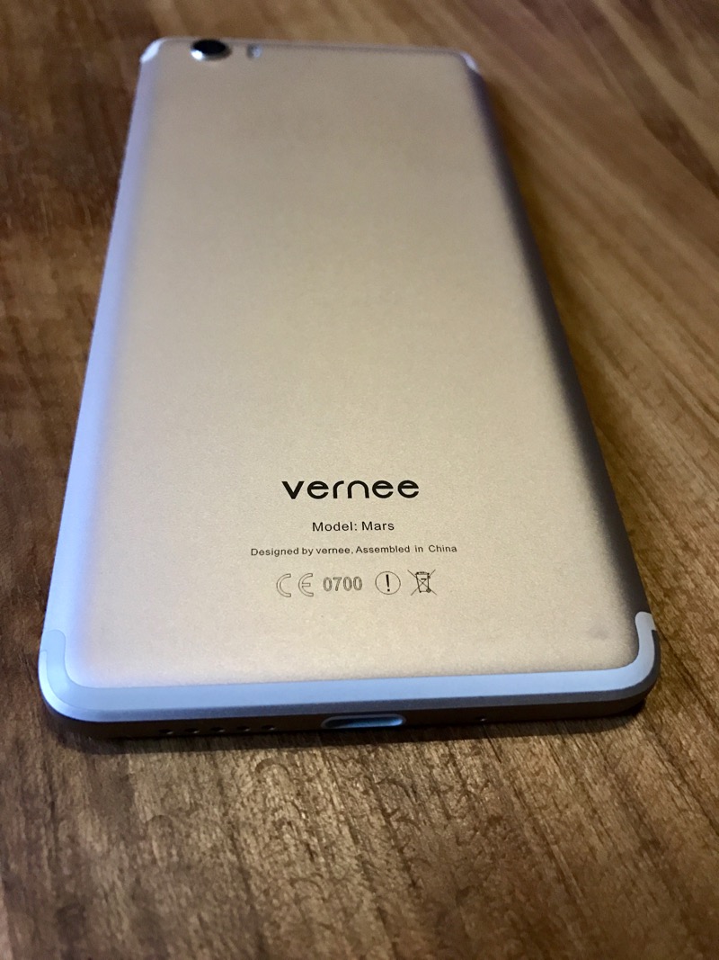 Concernant l’arrière du téléphone, nous avons un objectif photo de 13 MPixels qui ressort légèrement avec deux flash juste à côté. Plus bas nous pouvons mentionner la présence de la marque Vernee Mars. La tranche supérieure comporte une prise Jack 3.5 et la tranche inférieur se compose d’une entrée micro, du port USB Type C et d’un haut-parleur. Le côté gauche se compose d’un tiroir micro-SIM où nous pouvons placer soit 2 micros-SIM ou une micro-SIM et une micro-SD. Le Vernee est équipé d’un processeur Helio P10 à huit coeurs, épaulé par 4 Go de RAM et 32 Go de mémoire qui peuvent être étendue de 128 Go via une carte Micro SD.