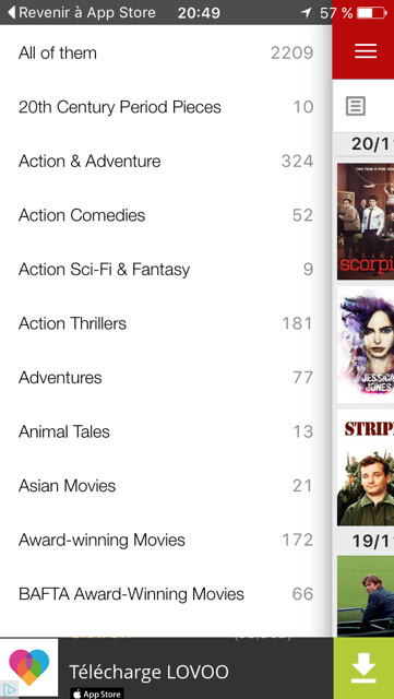 Une fois lancée, l’application vous propose un bref résumé des nouveautés des derniers jours. Il vous est ensuite possible, et c’est une bonne nouvelle, de consulter les dernières sorties via un système de catégories assez précis (Comédies d’action, Films anglais, Production Disney, Documentaires, Films français, etc…).