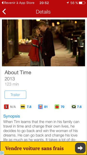 Pour chacun des films, il vous est proposé un résumé (en anglais) ainsi que les différentes cotes obtenues sur des sites bien connus comme IDMB. Ensuite, une bande annonce peut être affichée afin de vous donner un bref aperçu du film… De toute manière, c’est votre épouse qui choisira de regarder, encore une fois, “Un jour sans Fin“… Toute l’histoire de ma vie télévisée le soir devant le petit écran.