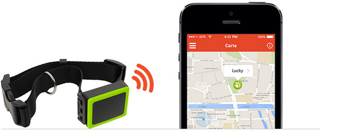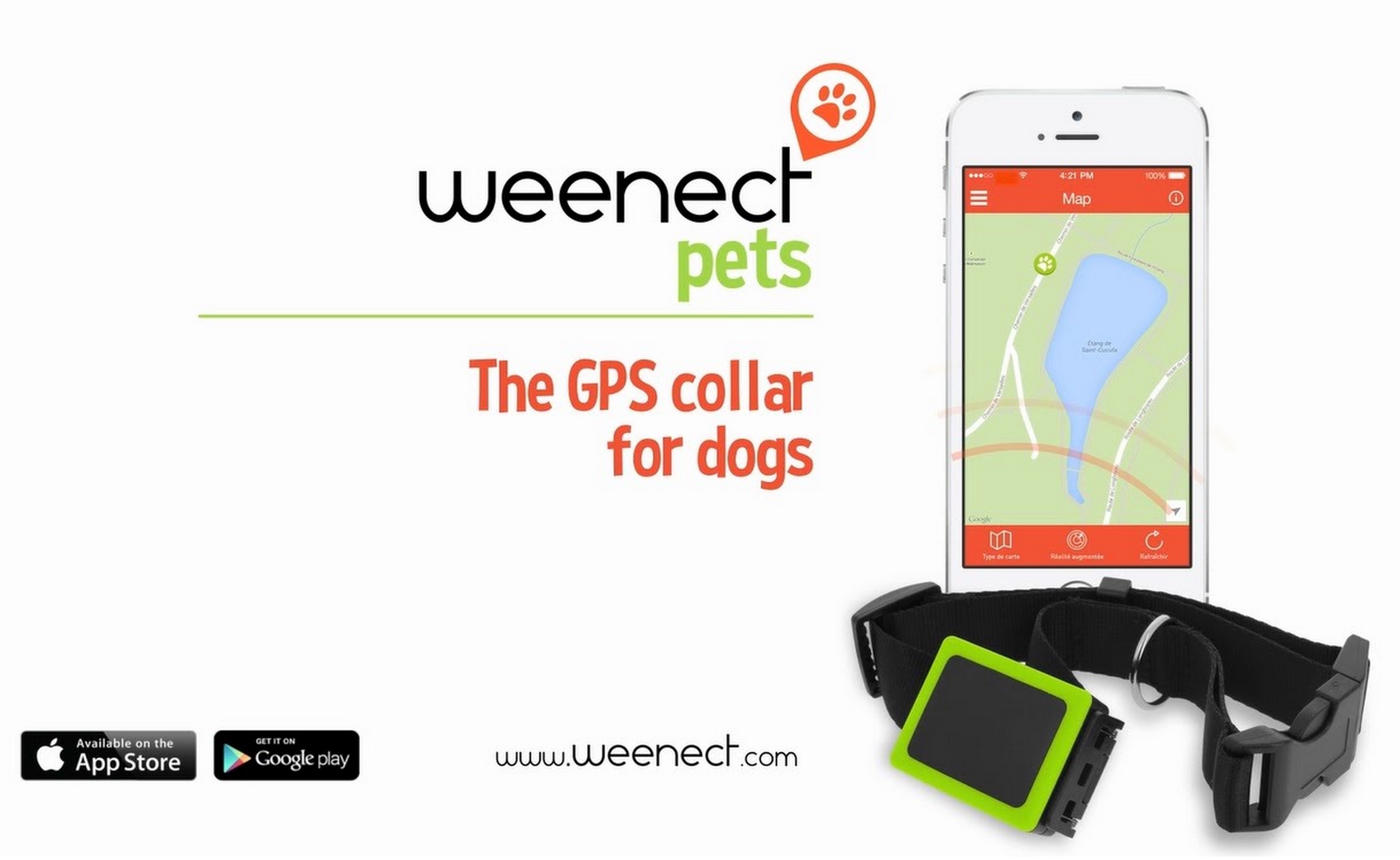 Présenté au dernier CES de Las Vegas 2015, le Weenect Pets est une espèce de collier équipé d’une balise GPS de la taille d’une boite d’allumettes. Le boitier contient également une carte SIM qui se chargera d’envoyer sur le réseau la position exacte de votre chien. Une fois l’application installée sur votre smartphone, vous pourrez dès lors suivre Mr Rex à la trace et éventuellement le retrouver au fond du bois en train de se rouler dans le cadavre d’un rat musqué.